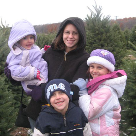 Coy, with my assistance, and Cael are posing while Ashlyn in the upper right takes her turn with Dad cutting down the tree.