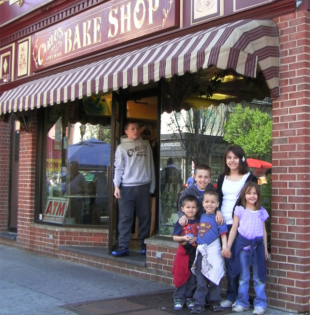 Day 2 came and here we are in Hoboken, NJ. Ashlyn, Ty, Ella, Cael and Coy are outside Carlo's Bakery. Maybe we will be fortunate and get a chance to see one of the members of Cake Boss.