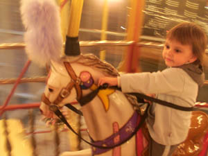 Mommy and Daddy took us to the mall to ride on the Carousel.