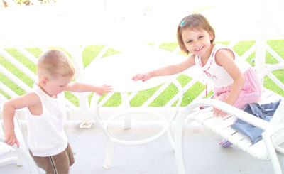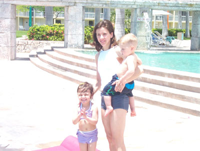 Mommy thought ahead and packed our swimsuits in our carry