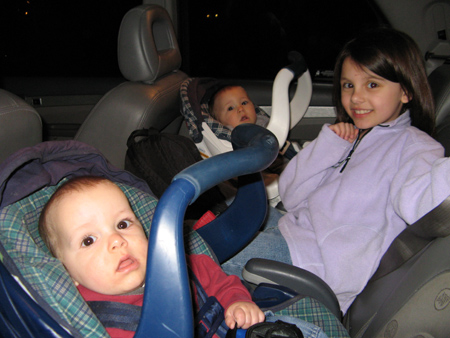 Little family pose after dinner with Ty, Ella, Mommy and Ashlyn. |