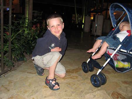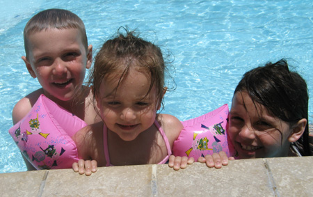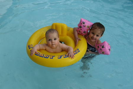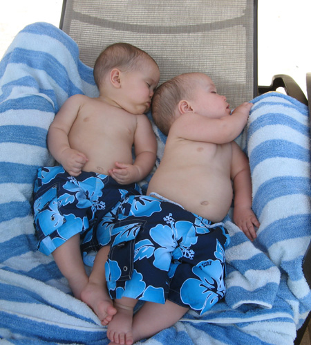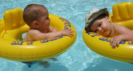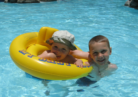 | So what makes a better vacation photo, two boys on a lounge chair or two boy hanging out in their floaties. |