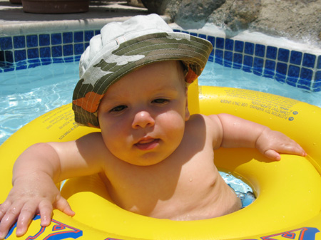 And the similarities with Cael and Coy continue to mount on this vacation. Just the way Cael likes to take in the pool - sitting on a lounge chair. |