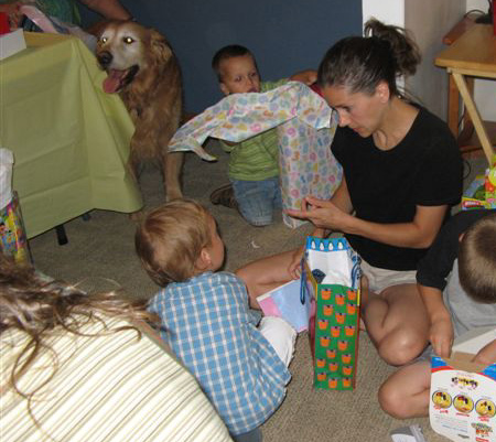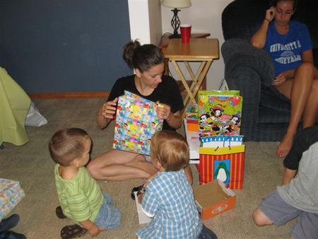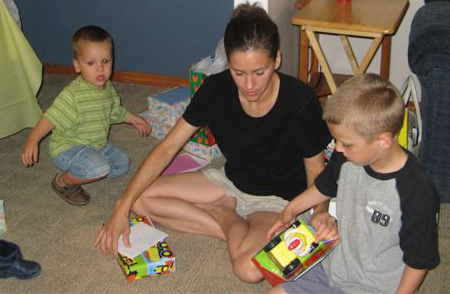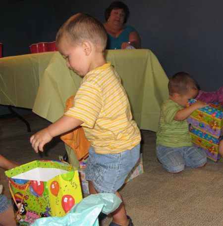 Braeden figured with all the kids in the house that Aunt Stacey would not realize that she gave one of Cael's presents to him. |