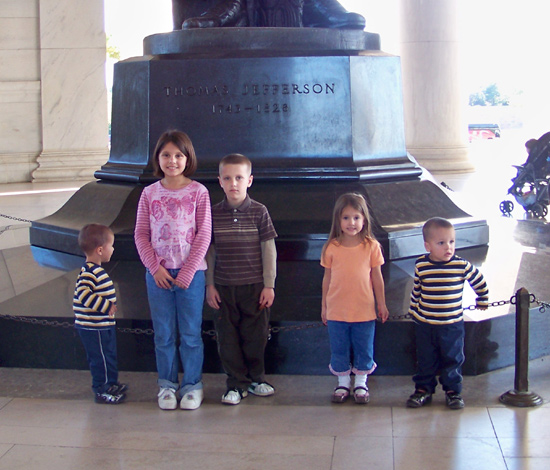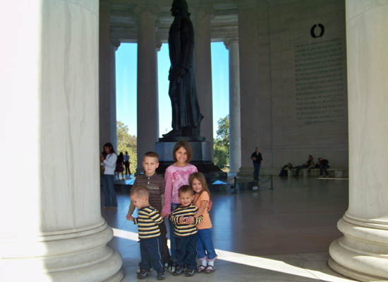 Here is Coy, Ty, Ashlyn, Cael and Ella at the Jefferson Memorial. |