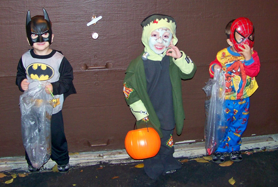 Frankenstein meets Batman and Spiderman? Sounds like a comic book series, you say. How about a night on the town to get some candy?