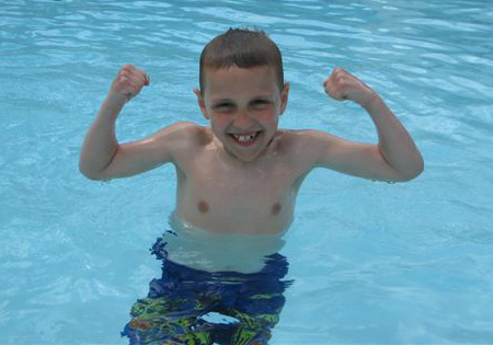 Here is Coy at the pool with his impersonation of one of his favorite Universal characters. Can you guess who it is? Here is a hint... you won't like me when I am angry! |