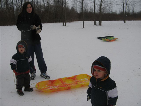 So what do you do with yourself when the temperature is just cold and the only way to keep warm is to bundle up? What a great question to ask and to leave up to the kids. And when you leave it up to the kids... the sky is the limit... or at least the hill is. |