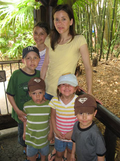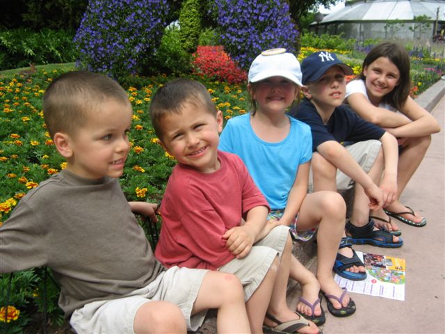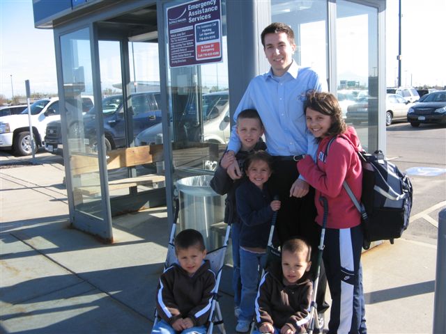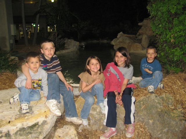 So we made it! We touched down in Orlando just about 9pm. Here we are (Cael, Ty, Ella, Ashlyn and Coy) waiting for Dad to get the rental.