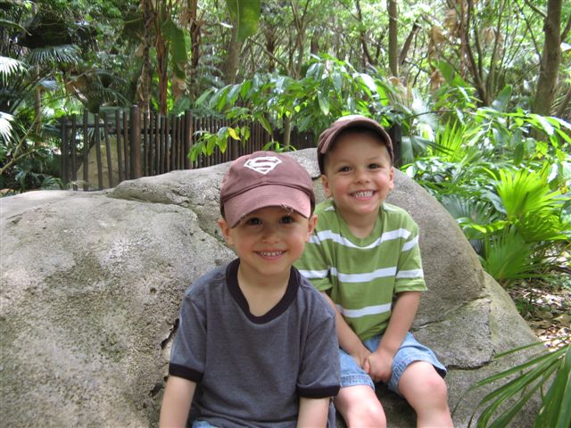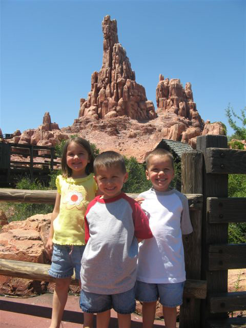 Here is Ella, Cael, Coy waiting while Mommy, Ty and Ashlyn rode the Big Thunder Mountain Railroad.