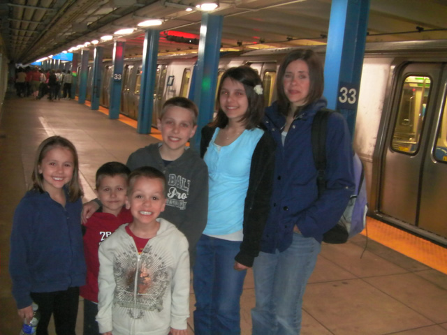 Day 2 came and here we are in Hoboken, NJ. Ashlyn, Ty, Ella, Cael and Coy are outside Carlo's Bakery. Maybe we will be fortunate and get a chance to see one of the members of Cake Boss.
