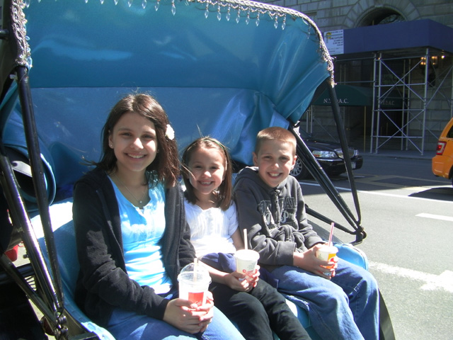Well, we made it to Central Park and the first part of why we went to NYC. Here is Ashlyn, Ella and Ty on their horse carriage ride.