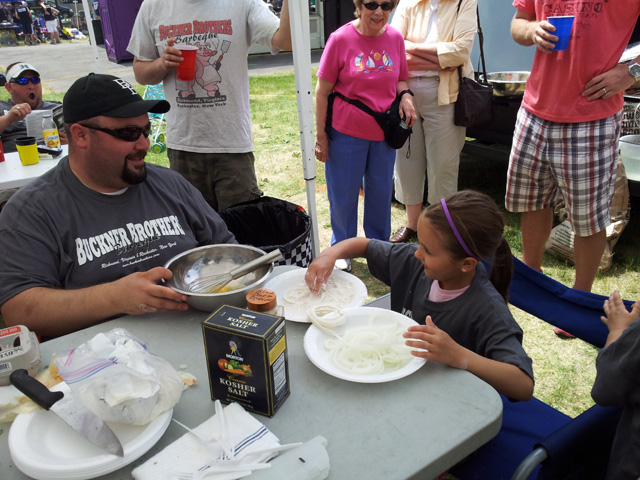 Above is Brian and Ella creating and mixing the seasoning for the onions.