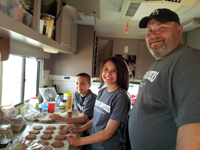 Since we only had 90 minutes from start to finish, until we had to turn in our final product, we broke up into sub teams. Here is Ashlyn and Ty with Uncle Elliott working on the burgers.
